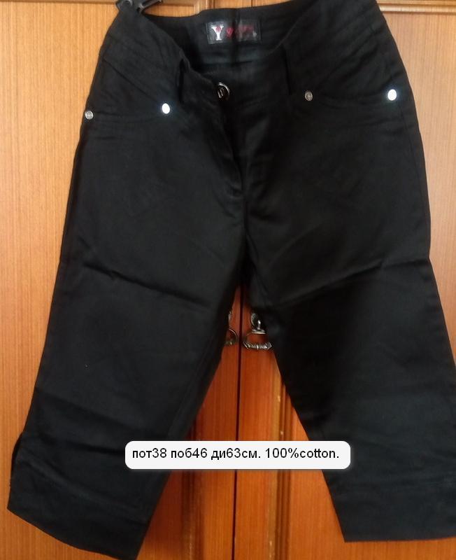 Отличное качество, плотная коттоновая ткань, талия- 39-41, бёдра-47-53, длина-61/41, посалка-21/33, ширина штанины-26/19,указан размер-42.