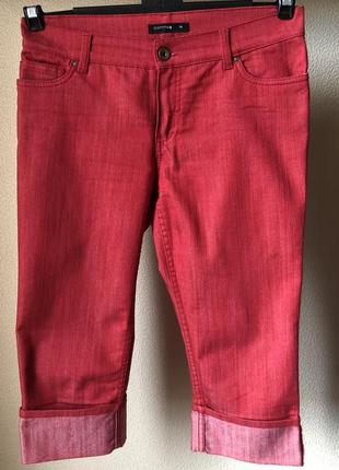 Комфортные и яркие джинсовые капри Comma. Лимитированная коллекция. Размер: 38. Замеры: п/о пояса - 40 см, п/о бёдер - 48 см, посадка спереди - 22 см, посадка сзади - 37 см, длина по внешнему шву - 68 см, длина по внутреннему шву - 45 см.