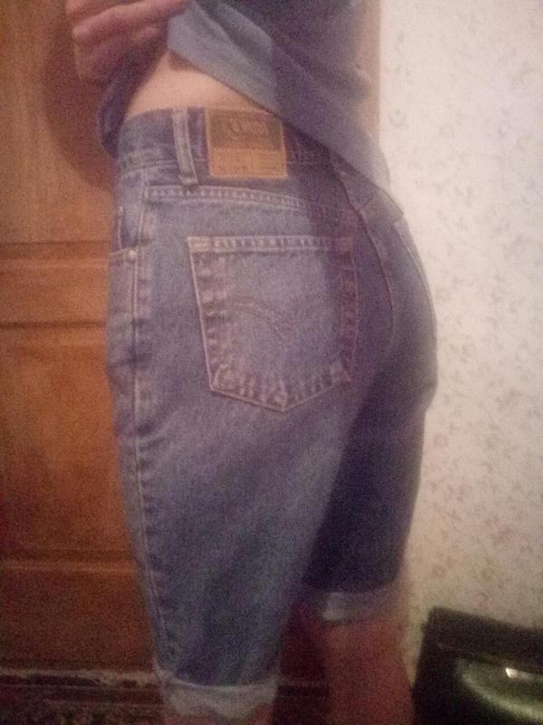 Джинсовые шорты.Размер на фото. Полуобхват пояса 32см. Полуобхват бедра 25 см.