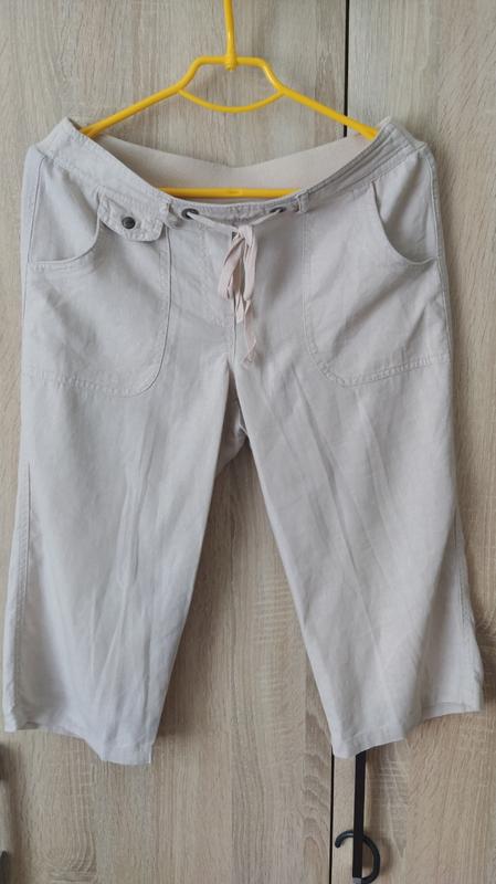 Бриджы женские льняные в хорошем состоянии размер 46-48, пояс на трикотажной резинке ( очень удобно ) сзади два кармана, ткань лёгкая.