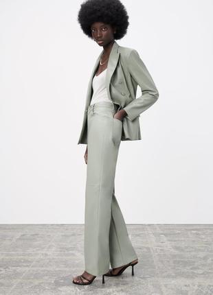 Модные кожаные брюки,нежно ментолового цвета. Эластичные и мягкие.