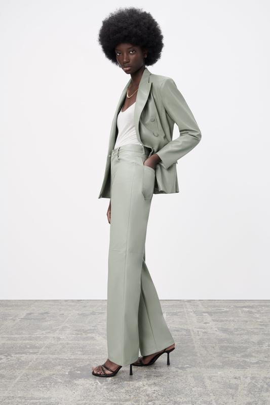 Модні шкіряні штани,ніжно ментолового кольору. Еластичні і м'які.