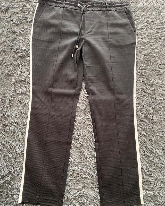 Брюки класичні в краплчку, з білою смужклю збоку.ПОТ-49см,ПОБ-58смДовжина 99мм