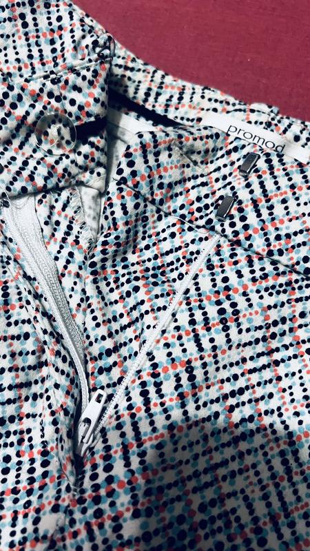 Брюки Promod пестрой расцветки, низкая посадка. Есть боковые карманы. Отличное качество. Размер 34, XS Замеры: ПОТ - 34 см ПОБ - 41 см, слегка тянутся, Укорочённая модель, заужены к низу. Состав - 98% - котон, 2% - эластан. Без дефектов. Состояние отличное. Оплата: 100 % на карту ПБ. Есть наложенный платеж. Доставка: Отправлю НП и Укрпочтой. возврата нет!!! ( пожалуйста, делайте свой выбор осознанно) фото на теле нет.