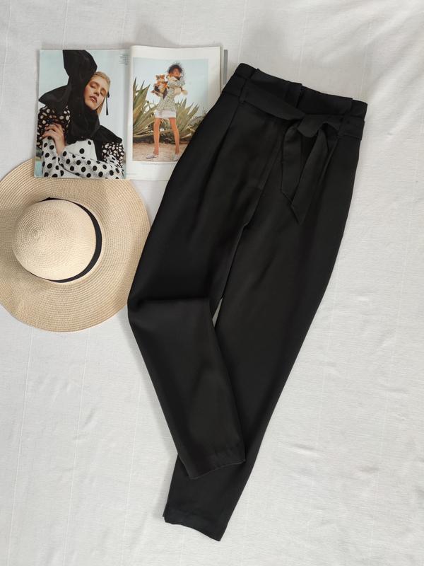 🌿легкі чорні брюки від H&M високої посадки з поясом і боковими кишенями Розмір:40 Заміри: ширина поясу 40 см, ПО бедер 53 см, довжина 97 см