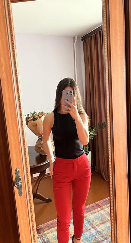 Класичні брюки Zara червоного кольору, тягнуться, на талії мають резинку. Довжина 91 см, обхват талії - 32 см, обхват бедер - 40 см.