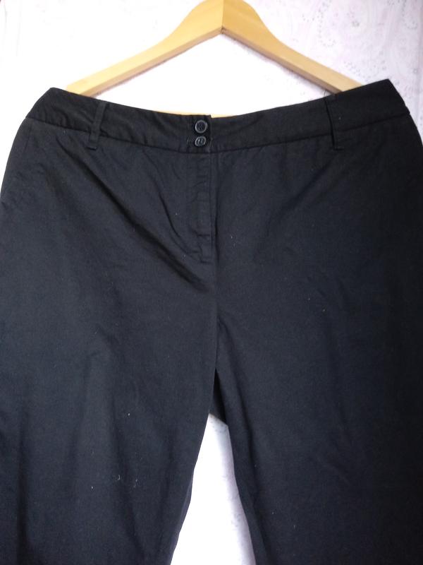 штани гарні,якісні,натуральна бавовняна тканина,колір чорний насичений,пятен потертостей нема,пояс півобхват44-45см,довжина по бічному шву90см,,ширина штанини внизу'22см