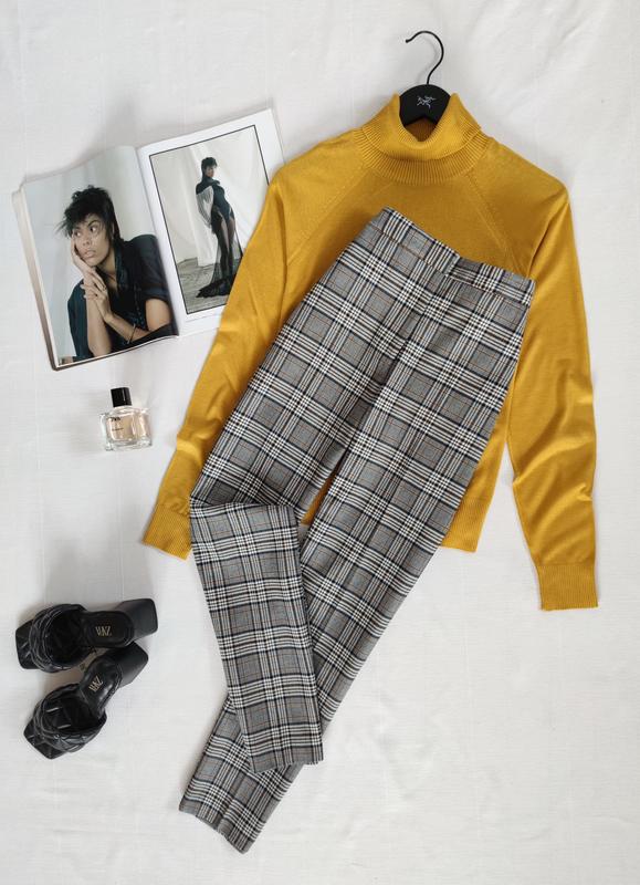 🌿брюки в клітку від Zara з боковими кишенями, талія ззаду на резинці Розмір:L Заміри: ширина поясу 40 см, ПО бедер 47 см, довжина 94 см