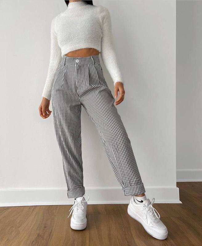 штани в клітинку актуальні принти цього сезону відмінний повсякденний вибір кольори: чорно-білий, св. бежевий, дрібна клітинка ➡️Мод. 863 розміри: 42-44, 44-46 тканина: брючний тіар стрейч довжина виробу 103см