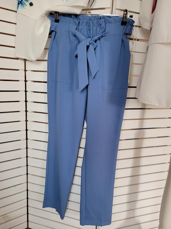 Очень красивые и удобные брючки💙 Цвет приглушенный голубой😊💙 Пояс на резинке, и декоративный поясок присутствует 😊 Ткань чуть тянется👍 Производство Турция. Размер 36 , но можно больше. Замеры: пот 33-42, поб-50, длина 88/68, штанина 29/17 Смотрите все мои объявления, вас ждёт много интересных вещей по приятным ценам!