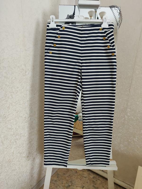 Hooly & White, линия Primark коттоновые брюки в круизном стиле, новые без бирки, сток, тёмно-синий с белым в полоску, размер 38, М, змейка сбоку, очень хорошая посадка, стройнят. длина по щиколотку, зависит от роста.