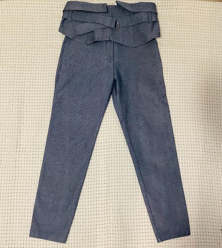 Брюки, джинси сіро-синього кольору Стан нові, без бірки Дуже стильно виглядають Пояс знімається Розмір хс Тканина не тягнеться Довжина 92 см Півобхват талії 30 см, вшита резинка тягнеться на 5 см Півобхват бедер 42 см