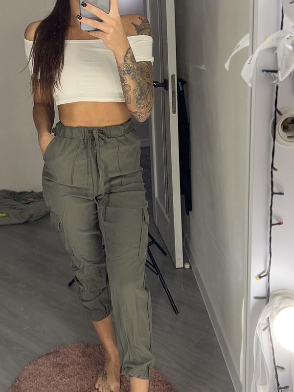 Штанишки от Sinsay❤️ Цвет хаки😍 На штанинах кармашки,сверху на резиночке и на шнурочек😊внизу тоже на резиночке😍 Очень крутые ☺️Новые! Размер XS