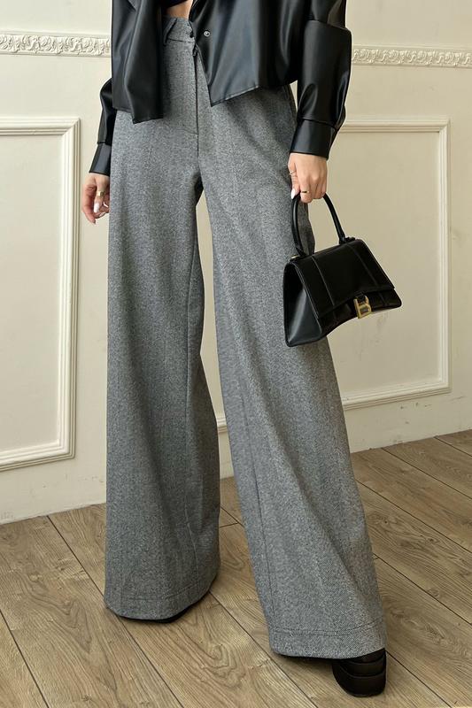 Декілька останніх років штани-палаццо не сходять з подіумів і вважаються хітом сезону. Щільна, тепла тканина – чудове рішення для осені. Безперечна новинка - штани-палаццо додають образу жіночності, елегантності, підкреслюють тонку талію, візуально роблять ноги довшими. арт.J000010 Тканина: шерсть-діагональ Склад: 50% акрил, 44% поліестер, 6% шерсть Колір: сірий, коричневий, темно-сірий, Розмір: XS, S, M, L, XL, XXL, XXXL Параметри моделі на фото: Зріст: 170 см, ОГ: 86 см, ОТ: 64 см, ОС: 93 см. На фото представлена модель розмір S (42/44). Фактичні виміри по виробу: Об'єм по талії: XS - 60-68; S-64-72; M-68-76; L-72-80; XL-76-84; XXL-80-88; XXXL-84-90; Об'єм по стегнах: XS - 94; S-98; M-102; L-106; XL-108; XXL-112; XXXL-116; Ширина штанини зверху: XS - 29.7; S-31; M-32,3; L-33,6; XL-34,9; XXL-36.2; XXXL-37.5; Довжина виробу з боку: XS - 116.5; S-117; M-117,5; L-118; XL-118,5; XXL-119; XXXL-119.5; Довжина крокового шва: XS - 85; S – 85; S-85; M-85; L-85; XL-85; XXL-85; XXXL-85; Посадка: висока Силует: вільний Пояс: притачний, ззаду резинка Застібка: брючна, блискавка та петлі Кишені: у бічних швах із похилим входом