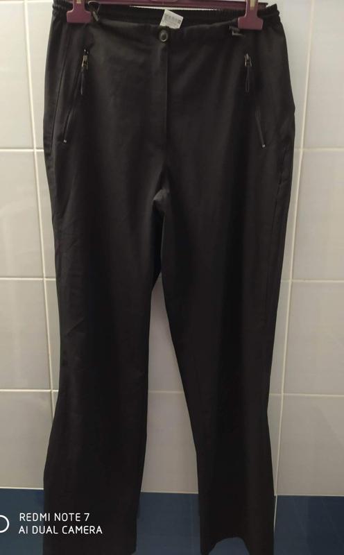 брючки в спортивному стилі,але не для заняття спортом,кишені та низ штанини на блискавках, в поясі резинка із фіксаторами збільшення-зменшення розміру талії,тканина легка та спадаюча. Дуже класні! Розмір 46-50, стан дуже гарний.