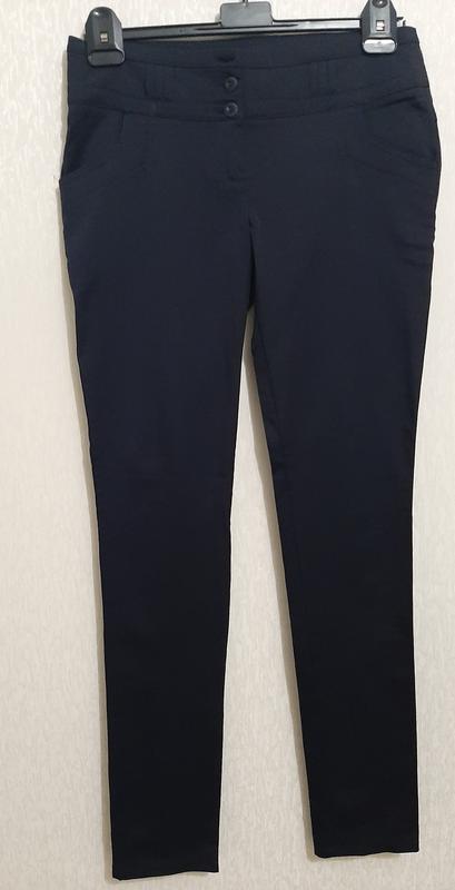 Классические темно-синие брючки с низкой посадкой.Красивыми петельками для ремешка..карманчики...Сзади потайные карманы.Очень безсподобно выглядят по фигурке. Размер:40/42 Пот-38 Поб-46 тянутся Длина-104 Глубина в кресле-21/29 Ширина штанины в бедре-24..внизу-15 зауженны