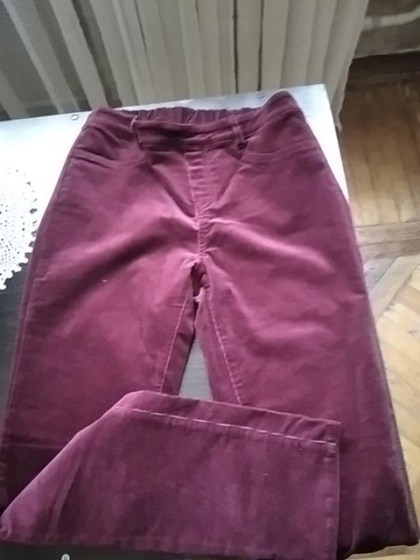Очень нарядно сморятя как из бархата. Новые, не разу не одеты, без бумажных бирок. По высоте- по косточки. Размер "L" полномерки. Пошиты по типу джинсов, но без заклепок и зипера. в поясе резинка по спинке. Стрейч. Замеры по запросу