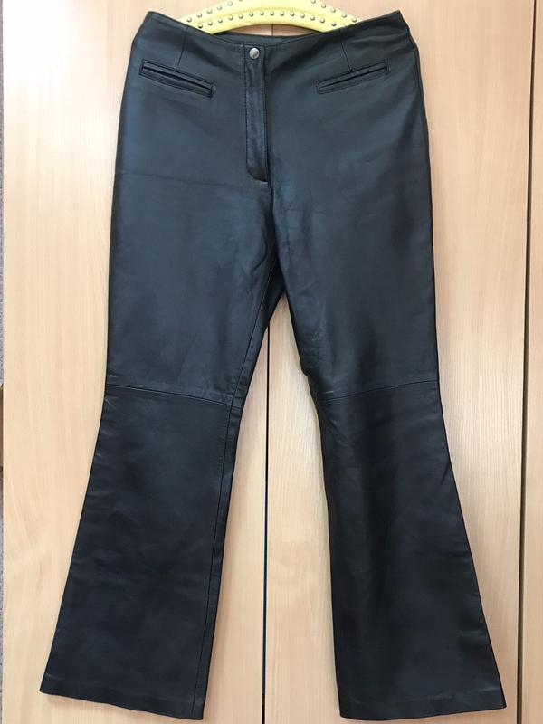 Кожаные брюки,в идеальном состоянии. Кожа мягкая,не тяжёлые на вес. Классический крой,дорогая кожа. Спереди 2прорезеых карманы. Немного маломерят,замеры сделаны в спокойном состоянии, без натяжки (кожа немного тянется,учитывайте) Длинна 104 Шаговый шов 78 Пояс 39 Бёдра 51 Посадка 29/37 Доставка Укрпочта и Нп, безопасной оплаты нет, читайте отзывы покупателей и раздел о продавце