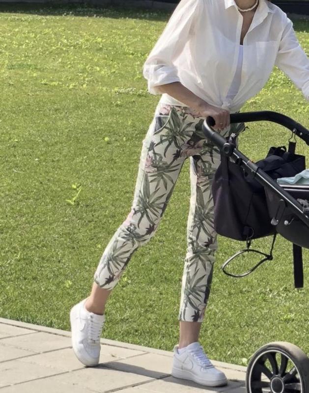 Штани Stradivarius з візерунком. Ззаду біля кишень трішки підшиті, видно на фото. При носінні не видно. ПОТ 36 см ПОБ 43 см Довжина 89 см На фото одягнено на розмір S, ріст 170 см.
