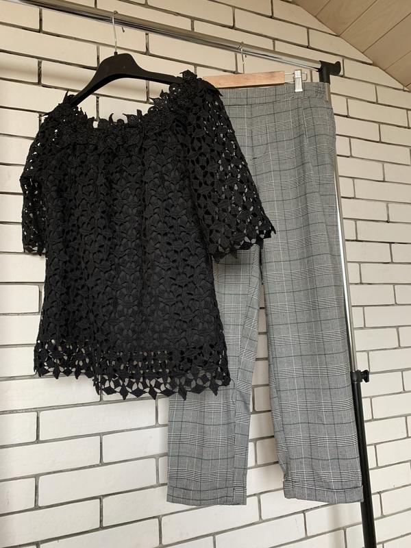 Класичні брюки у клітинку,розмір М Детальніший опис,параметри у приватні повідомлення Ціна може змінюватись Блуза та светр також є у наявності