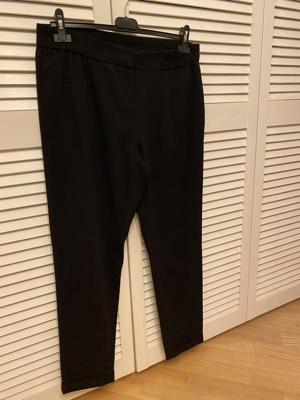 Чорні класичні штани чорного кольору,внизу загнуті,йдуть трішки заведені до низу.