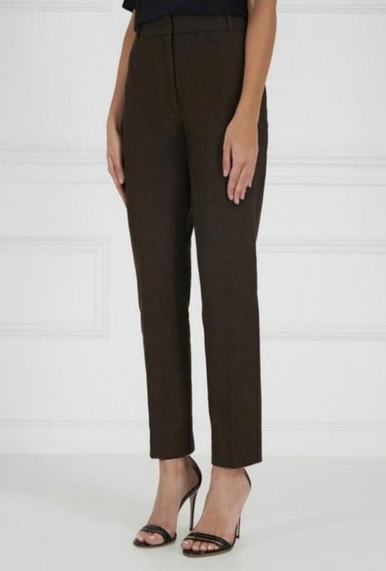Брюки прямого кроя от французкого бренда Carole Richard. Застегиваются на скрытую молнию и две пуговки - наружную и скрытую. С четырьмя прорезными карманам. Тонкие, но теплые в составе 44% натуральной шерсти. Хорошо садятся по фигуре. Новые, отсутствует картонная этикетка. ПОТ - 37 см ПОБ - 46-50 см Высота посадки - 25 см Длина изделия по наружному шву - 103 см Ширина штанины внизу - 19 см