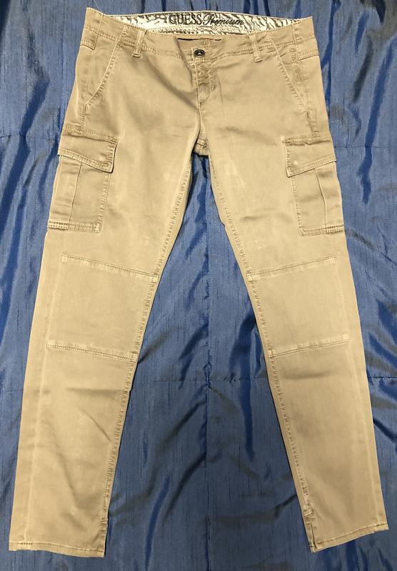 розмір 31, склад 98% cotton,2% elastan, НОТ 45 см, НОС 53 см. Довжина : 93 см. Посадка спереду 20 см, позаду 35 см, ширина штанини: зверху-29 см, знизу-15,5 см. Є запасні ґудзики.