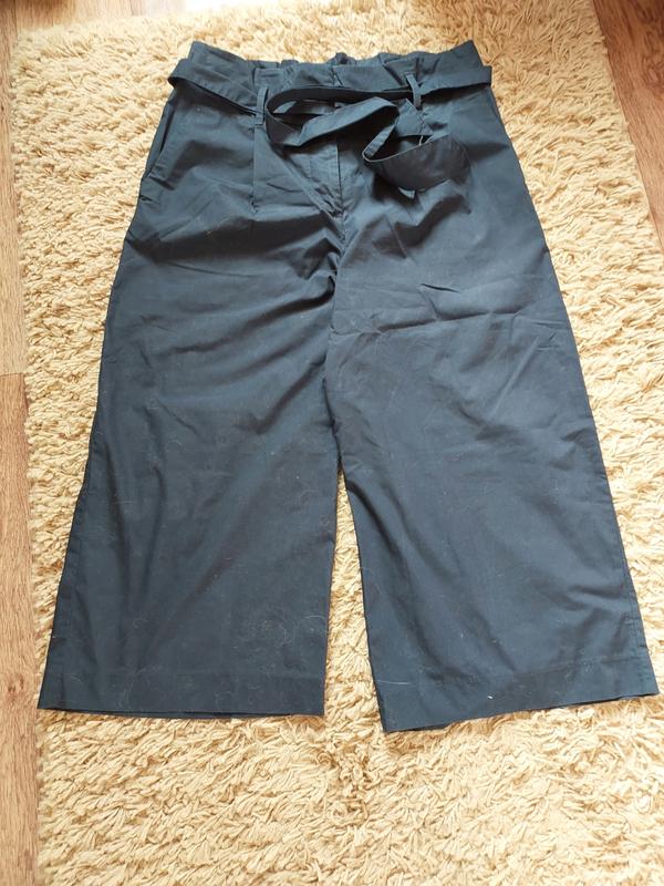 красиві вкорочені широкі брюки темно синього кольору ПОТ 43(тягнуться за рахунок вшитої резинки),ПОБ 57, довжина 85, посадка 37/40 ширина штанини 32