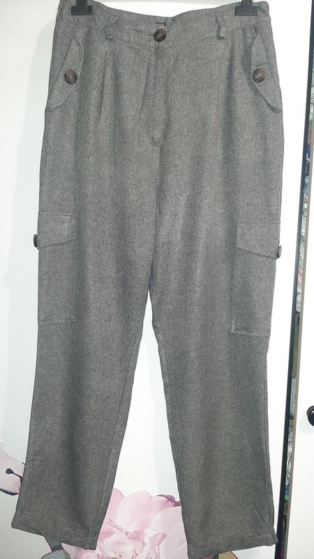 Класні штани з защипами та карманами,стильно виглядають, висока посадка. Довжина 1 02см, пот 41см поб 56см, посадка 36см.