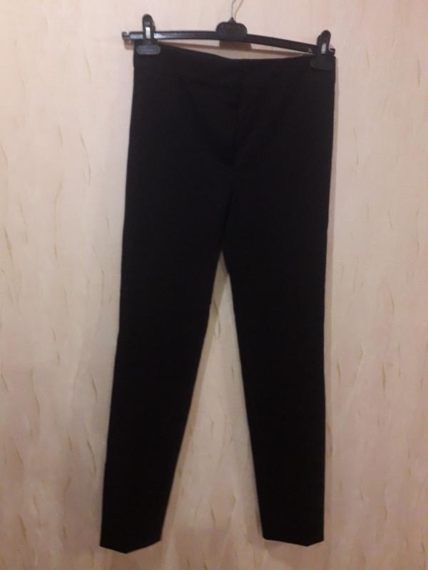 В новом состоянии.Дл.102.5,пот.39/42,поб.45/50.Очень плохая камера,не передаёт!Брюки насыщеного чёрного цвета,с стрелками.Ткань средней плотности,деми.
