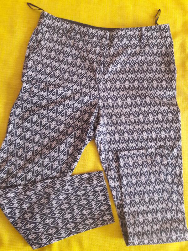 Брюки,цвет бежево-черный.Ткань похожа на сатин,очень мягкий и при ятный.Впереди бок.карманы,сзади карманы-обманчики.Пояс 42см, бедра 54см,от пояса до пересече ния швов 27см,боковой шов 92см, внутр.шов 67см.Ширина штанины вверху 29см,внизу 15см и есть раз резы.Сделано Вьетнам.Если надо еще фото -дошлю. Доставка УП, НП,Джастин, Мист