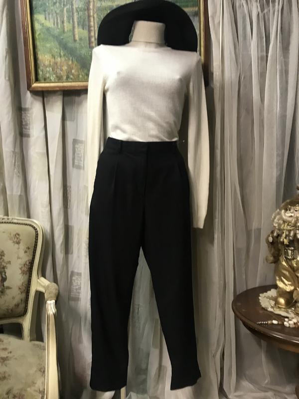 Укороченные брюки из тонкой шерсти от COS. Цвет-чёрный. Состав:шерсть-100/. Размер по бирке-34. Замеры: длина по наружному боковому шву-90 см, по внутреннему-62 см, ПОТ—36 см, ПОБ-45 см, полуширина штанины внизу-16 см. Отличные!