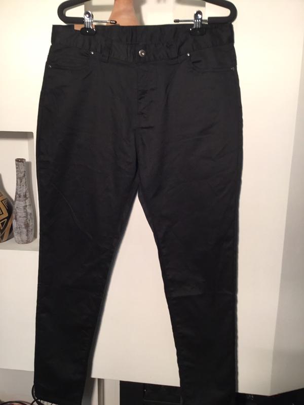 состояние новые с биркой черного цвета застегивается на молнию и пуговицу есть карманы есть шлевки для ремня к низу слегка зауженные 65%полиэстер 33%катон 2%эластан замеры пот 45 поб 56 посадка 29/39 длина 106 шаговый77 низ по 15