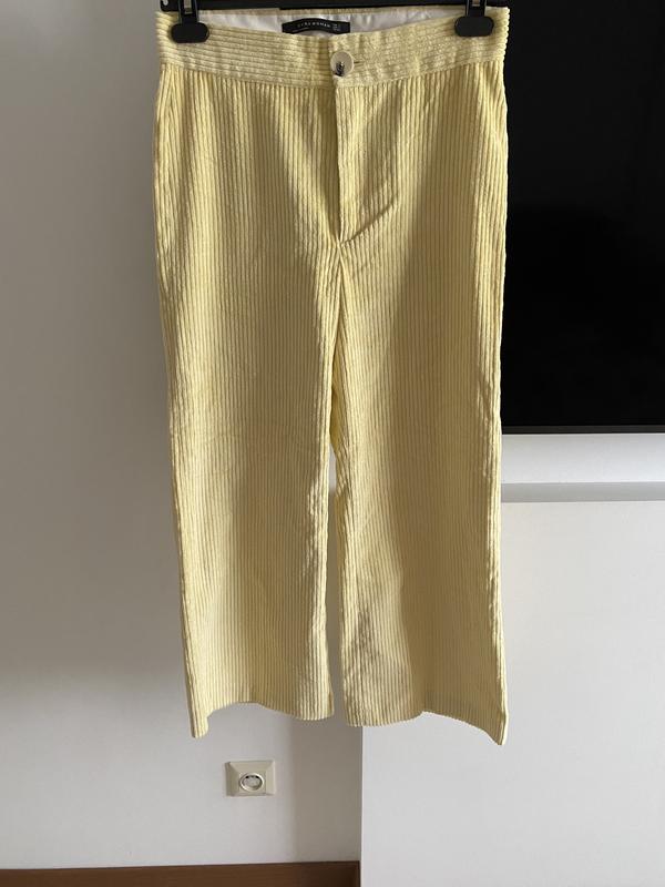 Вельветові штани ,ніжно лимонного кольору ,слідів носки нема,річ фактично нова , висока посадка .довж93см. Поб46,пів обхват штанки25