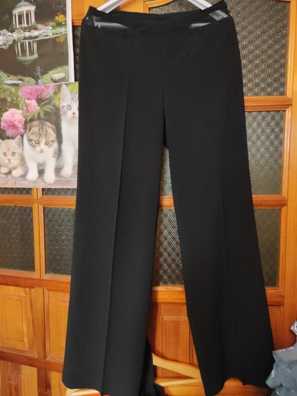 Класичні шовкові штани чорного кольору, з боку на блискавці. Бірки зрізані, орієнтуйтеся на заміри. Довжина 108, крок 86, пояс 40, ПОБІДИ 50-55, ширина калоші зверху 33, знизу 30. Стан чудовий! Але є нюанси (останні фото). Якщо носити поверх штанів блузу, сорочку, светер, тоді непомітно. В ціні враховано.