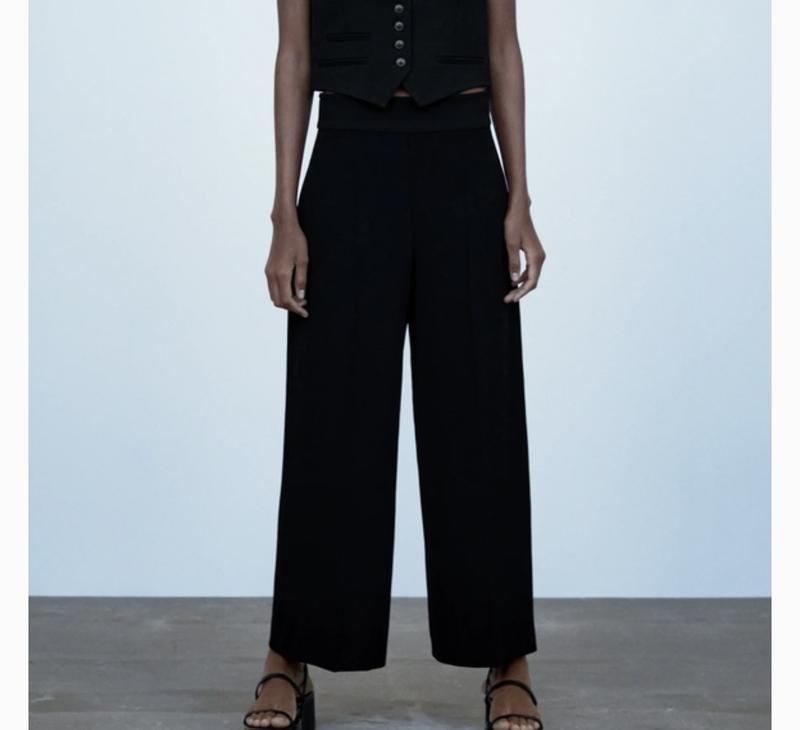 Крутезні широкі штани з високою посадкою. . Штани щільні , вкорочені . Темно сині.