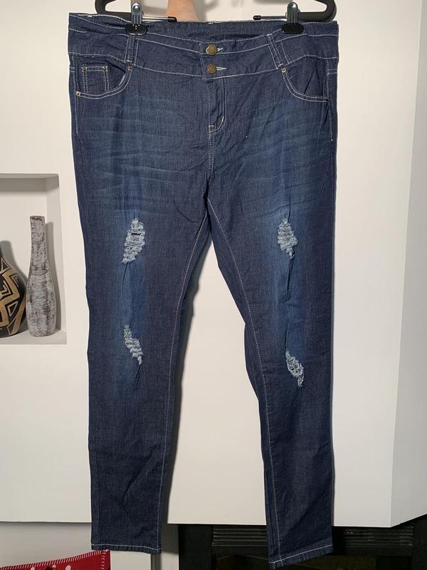 Состояние идеальное Тёмно синего цвета с потёртостями Рванки Лётный Катон Тянутся Книзу зауженные Застёгиваются на молнию и две пуговицы Есть карманы Замеры ПОТ-48/55 см ПОБ-58/67 см Длина-103 см Шаговый-78 см Низ по-15 см