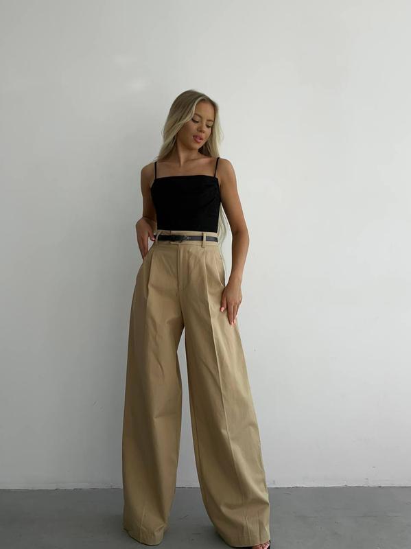 🔥В НАЛИЧИИ 🔥 ▪️мод 190 ▪️ткань : креп костюмка ▪️цвета : чёрный , беж ▪️SM ; ML брючины палаццо 😍 Брюки на высокой посадке , клёш от бедра ; выполнены из качественной ткани ; Смотрятся дорого и стильно 😍 Длина брюк 110 см Размеры SM | ML Талия : 60-66см | 65-73 см Бёдра : 88-94 см | 95-99 см