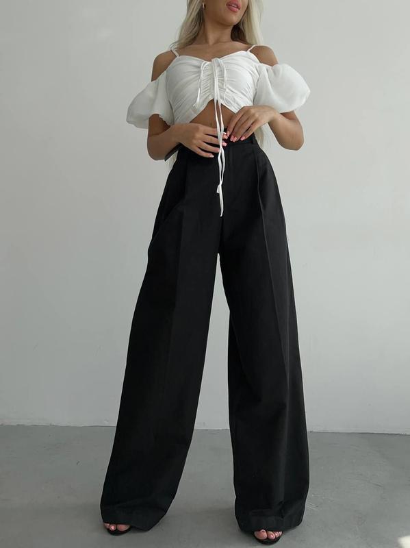 брюки 😻 ▪️мод 190 /25 ▪️ткань : креп костюмка ▪️цвета : чёрный , беж ▪️SM ; ML брюки палаццо 😍 Брюки на высокой посадке , клёш от бедра ; выполнены из качественной ткани ; Смотрятся дорого и стильно 😍 Длина брюк 110 см Размеры SM | ML Талия : 60-66см | 65-73 см Бёдра : 88-94 см | 95-99 см