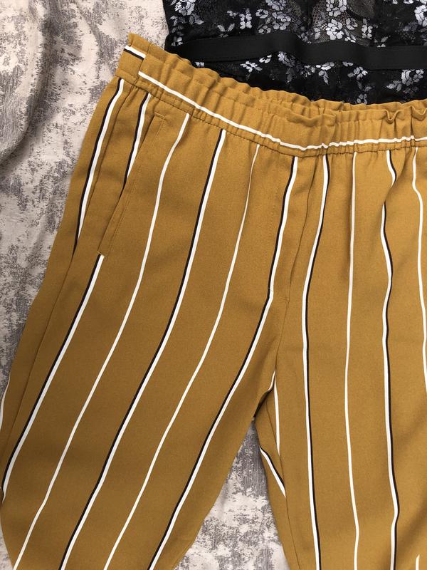 В идеальном состоянии. Вшитая резинка на поясе. Свободного прямого кроя. Длина 91 Пояс 82 ПО бедра 51 Посадка перед 28 Посадка зад 39 ПО штанина верх(ляжка) 31 штанина низ 17