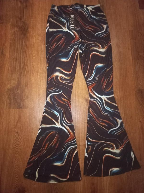 Штани кльош MODE-LL Стан: нові ( з біркою ) Розмір: 14 ( M-L ) ПОТ: 34 см (тягнуться до 50 см ) ПОБ: 49 ( + тягнуться ) Довжина: 107 см