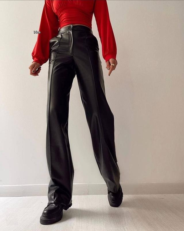💥НОВИНКА💥/55 Кожаные брючки Палаццо🥰 Мод 562 Размер S-М и M-L Черный Качественная турецкая экокожа Отличное качество👍 ⬇️⬇️⬇️⬇️