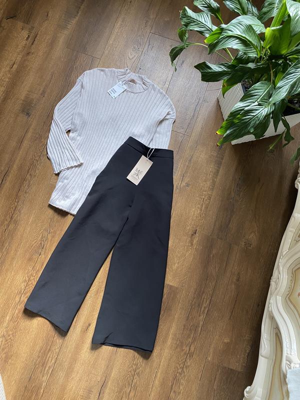 !Новые с биркой! Кофта в широкий рубчик от H&***;M и брюки кюлоты Цена: Брюки: 650грн Кюлоты идут на резинке, со стороны по талии замок, ткань плотная Кофта приобреталась в Швейцарии в фирменном магазине, не подошел размер, идут разрезы на рукавах, широкий рубчик Купился за 1000грн, моя цена: 750грн(возможен торг) Размер: Л Хорошо тянется @*****************