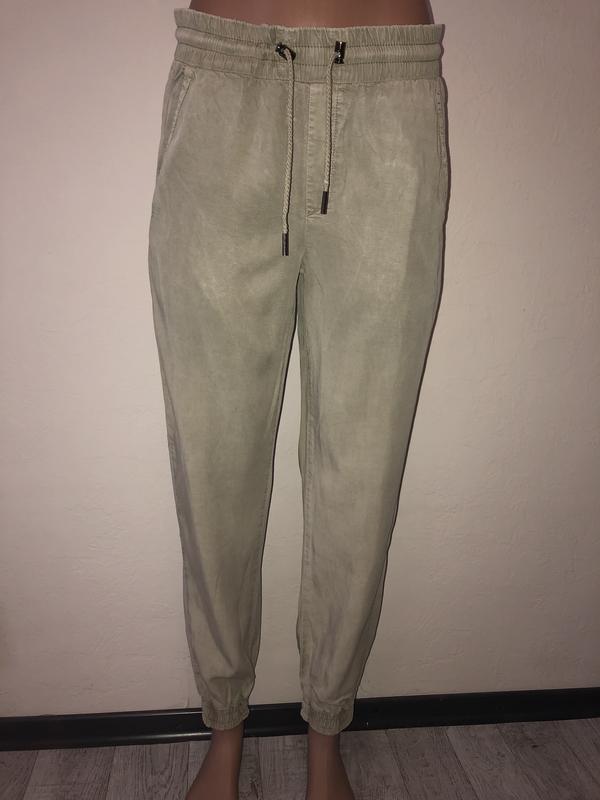 На резинке сверху и низ, затягивается кулиска, тоненькие, ткань лиоцел.