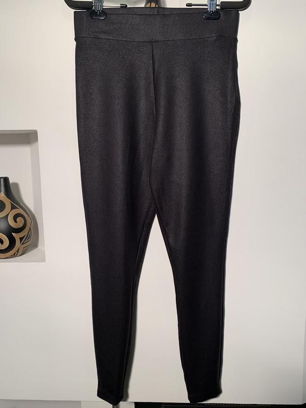 Состояние идеальное Нет следов носки Чёрного цвета с напылением под кожу Плотные Тянутся Пояс на широкой резинке Высокая посадка К низу зауженные 68% вискоза 27% нейлон 5% эластан Смотрятся супер Замеры Пот 37/45 Поб 42/55 Посадка 31/39 Длина 94 Низ по 10,5+