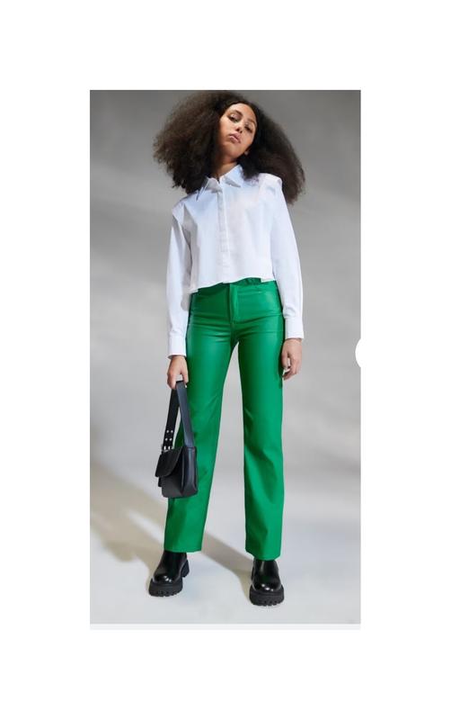 Актуальные брюки под кожу, с напылением, яркие, стильные, модные, трендовые