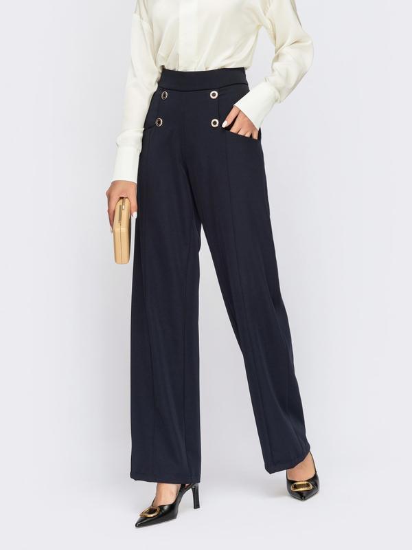 💣Широкие брюки с высокой посадкой. По полочке декорированы пуговицами. В боковых швах - карманы. Застегиваются на скрытую молнию сбоку. ✔Размер:44,46,48,50,52 🪡длина внешнего шва – 112 см 🪡длина внутреннего шва – 83см 🧵Состав: 35% хлопок, 35% вискоза, 30% полиэстер 🎨Цвет: черный,темно-синий 🧵Материал: Костюмна тканина 💳Цена 1250грн 🔥 Арт617503 ❗Для заказа и детальной информации ndем в дырэкт💌, или комментарии ⤵️