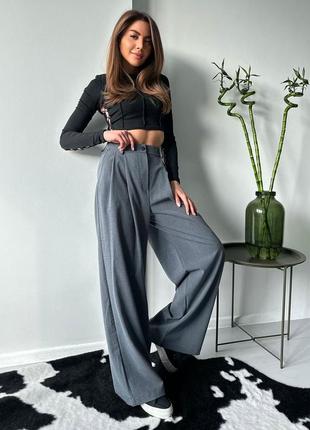 Серые принтованные брюки палаццо Размеры : S, M, L, XL, 2XL, 3XL Цена: 799 грн Цвет Серый Тканина : Костюмка Модель с высокой посадкой, защипами спереди, стрелками по всей длине и карманами по бокам. Застегиваются на молнию и пуговицу.