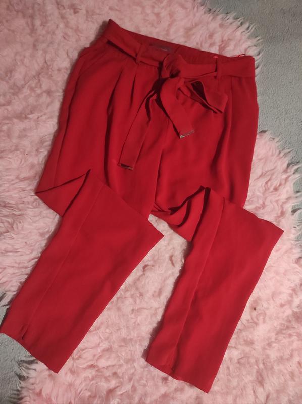 брюки красного цвета, с поясом, карманами