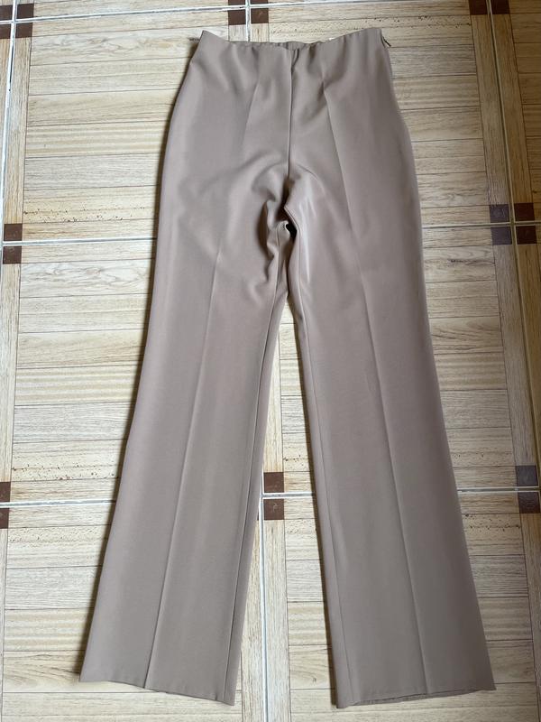Брюки широкие к низу, можно заувлять кант как на фото можно и без его, завышенная талия, что очень удобно, со стороны замок, размер М, за замерами и фото воспользуйтесь ответным.Штанами в идеальном состоянии как новые, одевала 3 раза